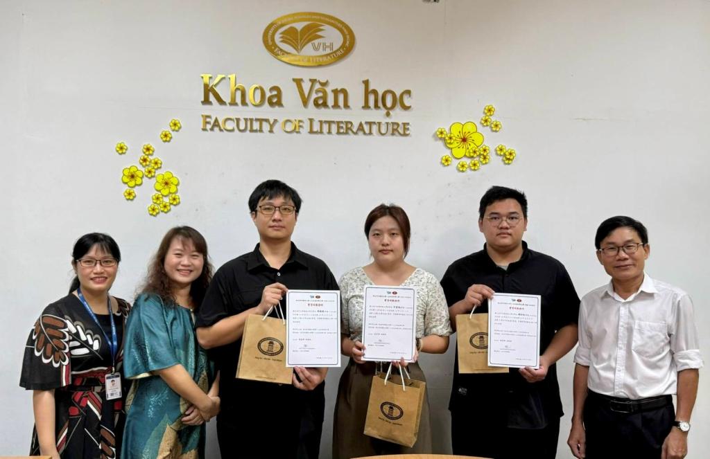 【勁報記者于郁金/金門報導】為落實國際化教育政策並培養學生跨文化教學實務能力,國立金門大學華語文學系持續推動海外華語教學實習;由華語文學系許玉敏老師、語文與人文創意應用碩士學位學程主任宋惠如老師主持教育部「114年度第一梯次新南向學海築夢計畫」,選送金門大學華語文學系許書敏、蘇詮祐、陳國豪3位同學前往越南胡志明市國家大學人文社會科學大學。