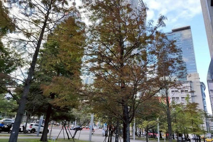 ▲矗立的落羽松在季節變化中悄然變色。 圖:臺北市政府工務局/提供