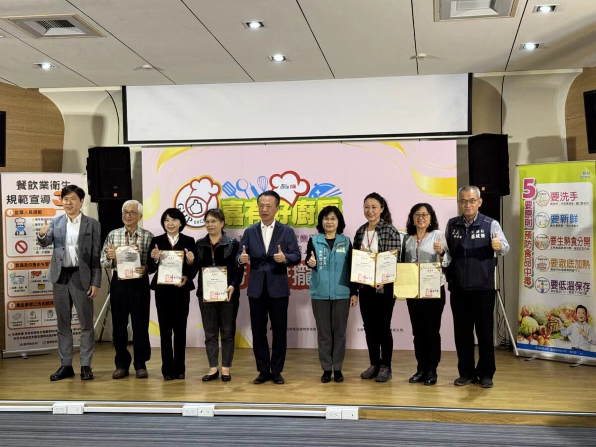 【記者 吳瑞興/嘉義縣 報導】嘉義縣政府衛生局18日於「永在食安大樓」舉辦「114年度餐飲與烘焙業衛生管理分級評核頒獎典禮」,縣長翁章梁親自頒證表揚86家通過嚴格評核的優質餐飲與烘焙業者,肯定業者在食品安全與衛生管理上的努力。典禮特別邀請崇仁醫護管理專科學校餐飲管理科師生擔任表演嘉賓,學生以活力十足的開場舞揭開序幕,並透過創意短劇為活動增添亮點。演出尾聲,崇仁餐管科師生與縣長及評核委員共同宣誓「在嘉護食安,衛生又安心」,展現產官學攜手守護嘉義食安的決心。