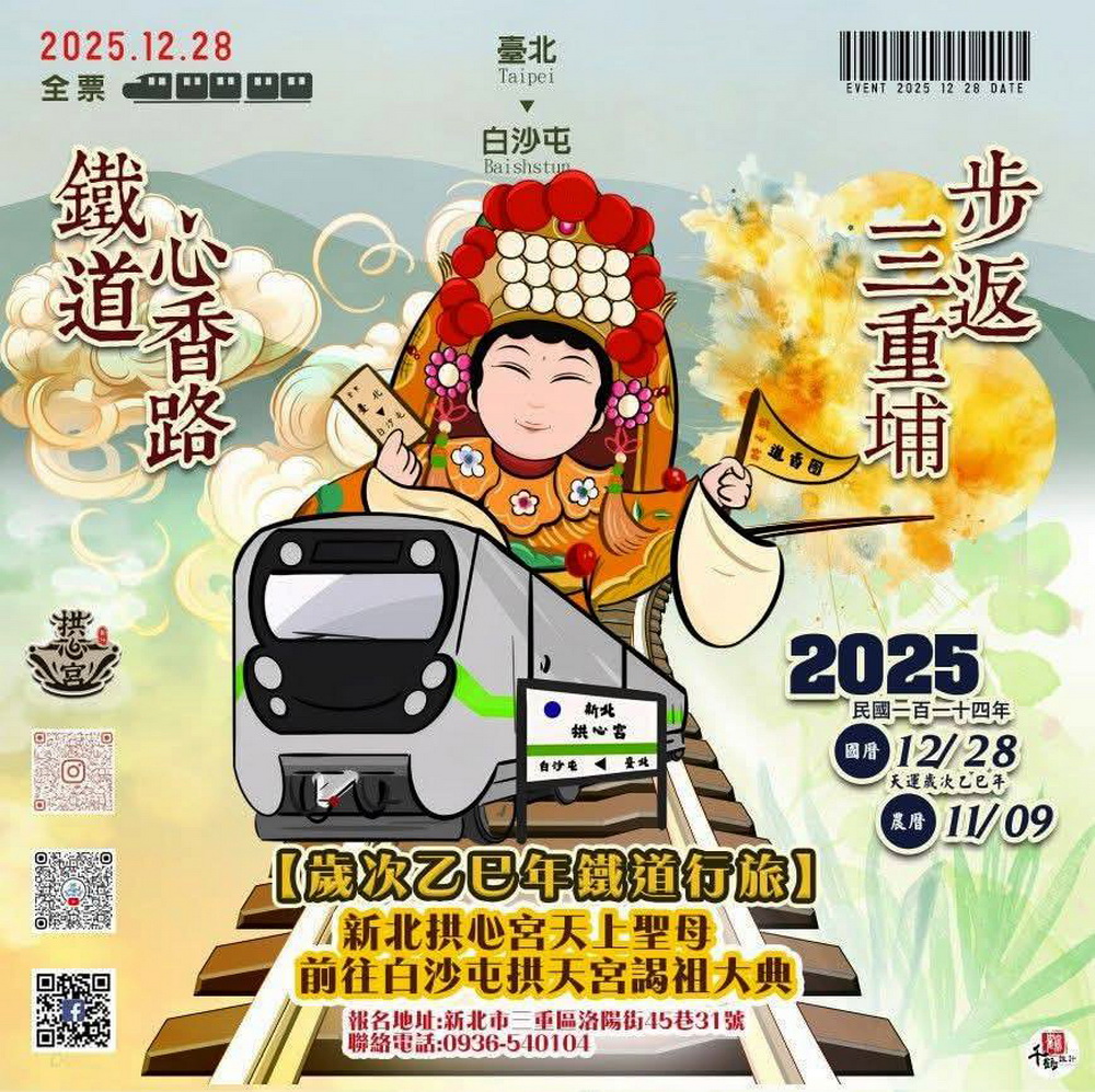 陳俊維指出,面對社會的不安與悲傷,更需要凝聚正向力量,因此特別分享一項具有祈福意義的宗教行程;新北拱心宮白沙屯媽祖聯誼會-天上聖母將於下週六(12月28日)自三重出發,徒步行進至台北車站,隨後搭乘台鐵包車返回苗栗白沙屯拱天宮祖廟,完成謁祖進香行程。