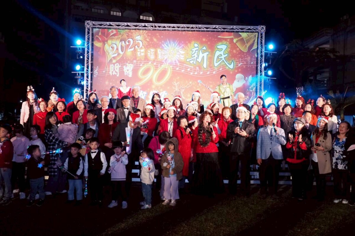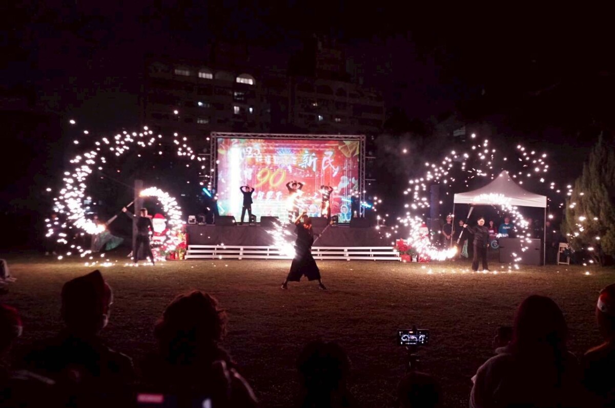 新民高中進修部2025年祈福點燈晚會,活動內容豐富,場面盛大。在新民高中管樂隊演奏歡樂耶誕組曲的歡樂氣氛中揭開序幕,接續由嶺東科技大學原住民鼓舞社太鼓表演,進修部體育班學生亦擔綱演出精彩的夜光雙龍「龍之舞」;此外,還有童軍團光影燈火舞、扯鈴演出等節目,充分展現新民學子青春活力與多元藝術能量。