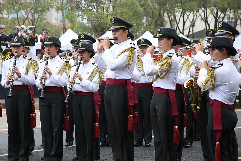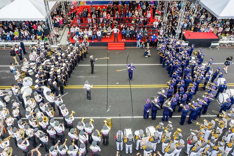 本次演出由國防大學理工學院風嶺樂儀旗隊、中華民國空軍軍官學校、中華民國海軍軍官學校軍樂隊及中華民國陸軍軍官學校軍樂隊輪番登場,各隊以精華濃縮的演出展現鮮明特色。從操槍、旗舞到銅管齊鳴、戰鼓齊發,整齊劃一的隊形與強烈節奏,讓現場觀眾近距離感受三軍樂隊的力量與氣勢,掌聲與歡呼聲此起彼落,現場氣氛持續升溫。