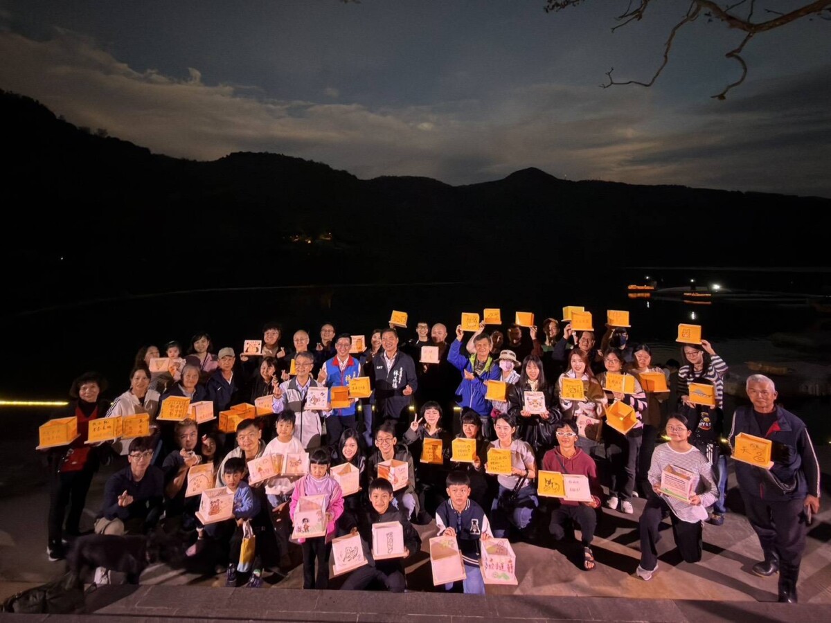本次鯉魚潭水燈製作體驗活動,特別結合地方學校(銅蘭國小及文蘭國小師生)、社區、地方業者及公私部門共同參與。活動前先發放許願卡給學校和機關,讓參與者有充分時間繪製內容;活動現場也準備彩繪及書寫用品,供未事先準備的友人現場製作簡易許願卡,活動日現場組立友善許願水燈,並在工作人員引導下,於潭北碼頭統一投放。活動當日除了邀請的各界人士,到訪的許多遊客也現場報名參與;更讓人驚喜的是,來自北海道株式會社的武藤克英代表人賢伉儷、英國及新加坡的朋友亦熱情參加。