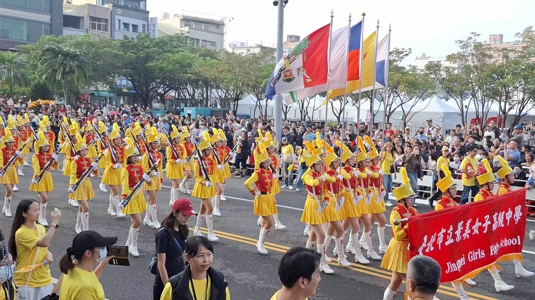國際團隊的踩街演出同樣吸引目光。來自日本的奈良學園大學行進樂部以青春洋溢的動感演出獲得滿場喝采;連續28年榮獲金賞的熊本工業高校吹奏樂部以精準步伐與震撼音場掀起高潮;首次來臺的香港普音步操樂團與格蘭風笛聯合樂團,融合步操鼓與蘇格蘭風笛,展現罕見的跨文化音色;韓國濟洲海女歌舞團則以百年海女文化為創作核心,透過歌舞與象徵性動作,細膩呈現人與海洋共生的文化故事。多位國外團員表示,嘉義市民的熱情回應令人難忘,沿途不斷的掌聲與加油聲,成為最珍貴的演出能量。