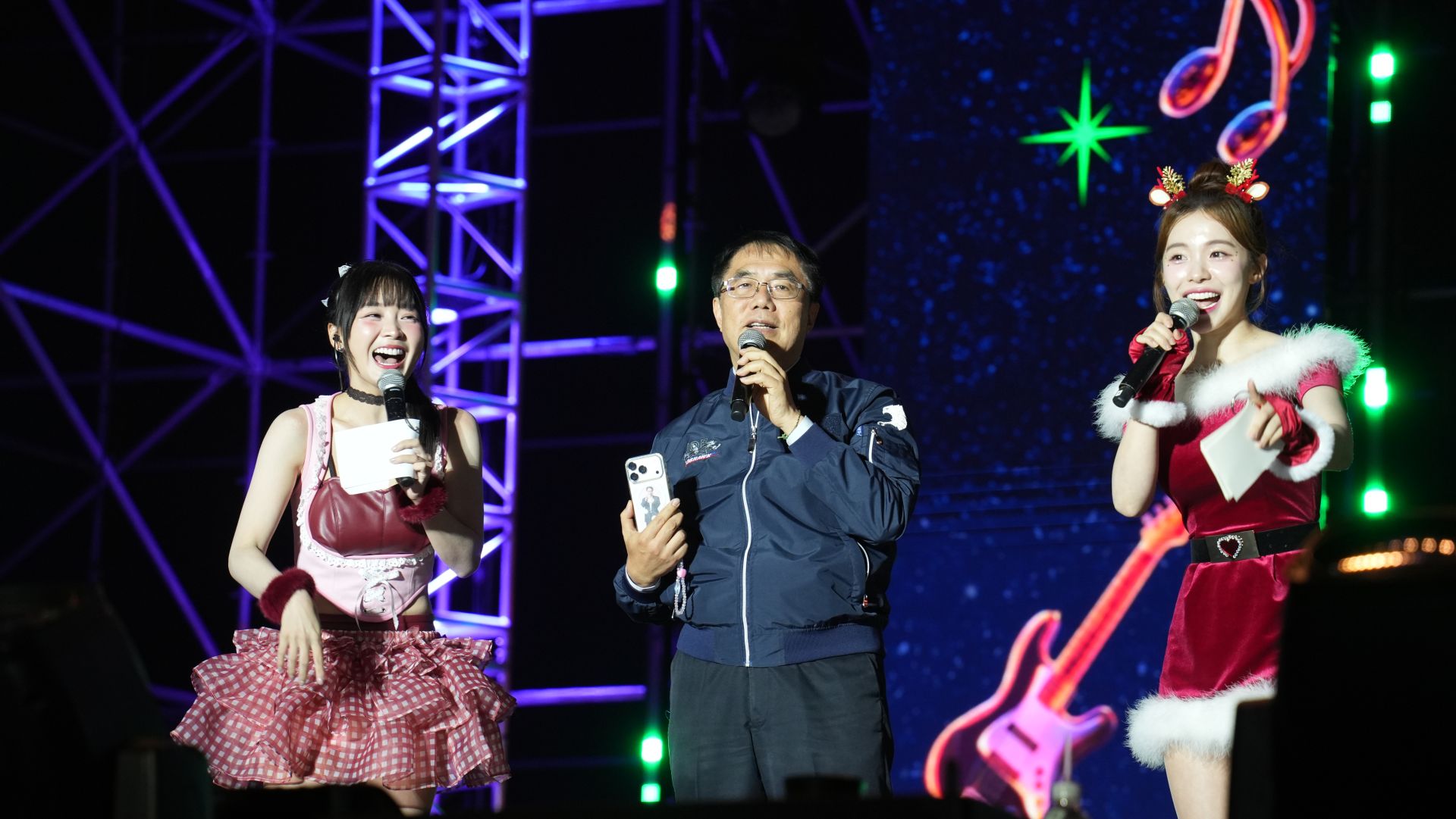 黃偉哲致詞時笑說,很開心看到台南市民在音樂陪伴下提前感受跨年氣氛,也祝福大家「平安快樂迎接2026!」他強調,市府已全面提升活動安全維護措施,讓市民放心、大膽嗨唱,「大家安心玩、我來顧安全!」一句話博得全場掌聲與歡呼。