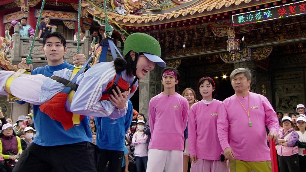 ▲ 胡瓜親自代替奶奶被吊上半空中挑戰。(圖:民視)