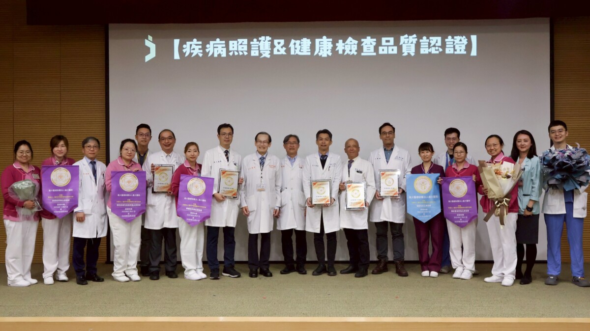 義大醫院通過腎臟病、關節置換、慢性阻塞性肺病(COPD)與頭頸癌四項疾病照護品質認證,其中多項連續獲肯定;乳癌照護團隊首次通過認證;健康管理中心則再度取得健康檢查品質認證,彰顯臨床照護與預防醫學的全面成果。