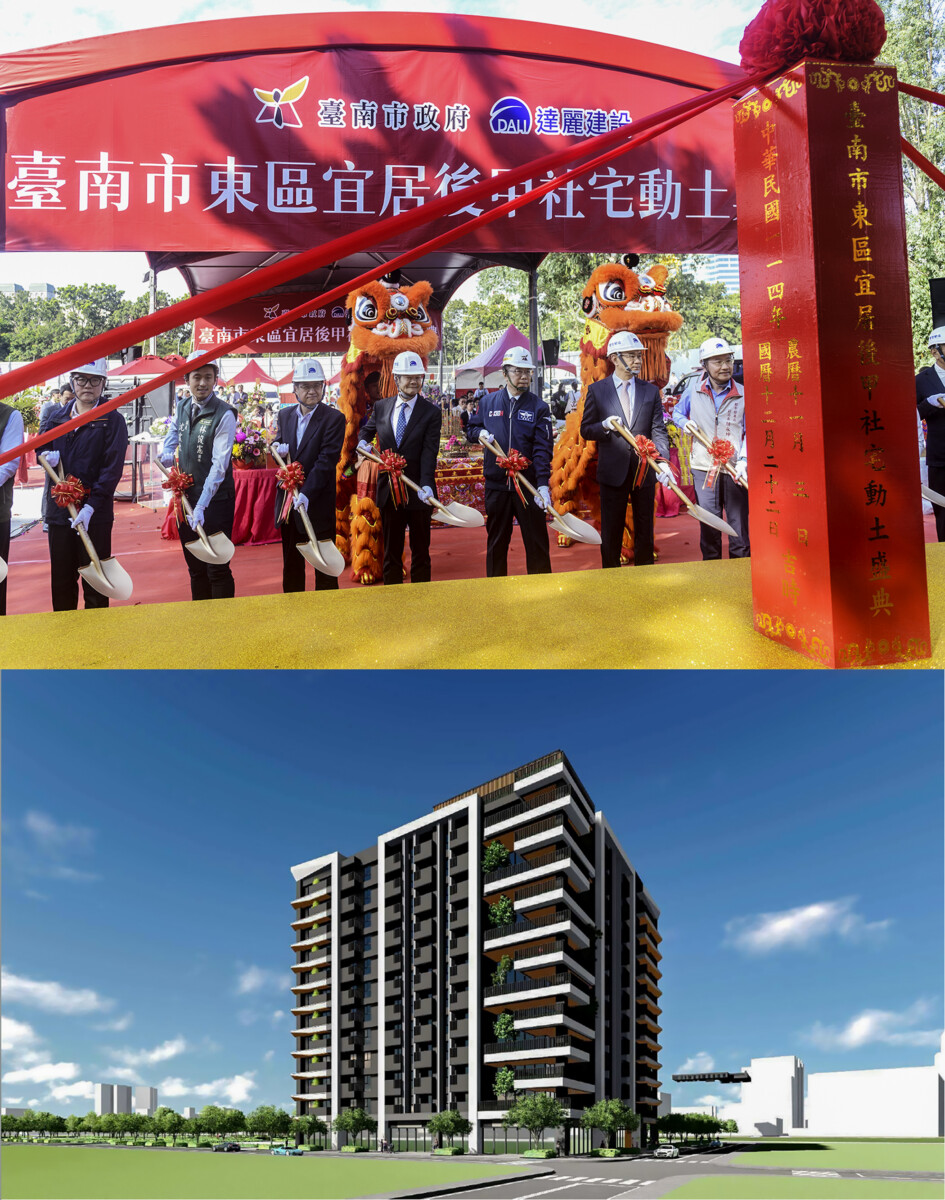 黃偉哲表示,東區屬於台南市發展成熟、土地成本高的精華區段,能在此推動社會住宅實屬不易。他指出,「宜居後甲」社宅是市府辦理公辦都更的重要成果,由達麗建設透過都市更新容積獎勵方式回饋市府,取得175戶社會住宅量體。