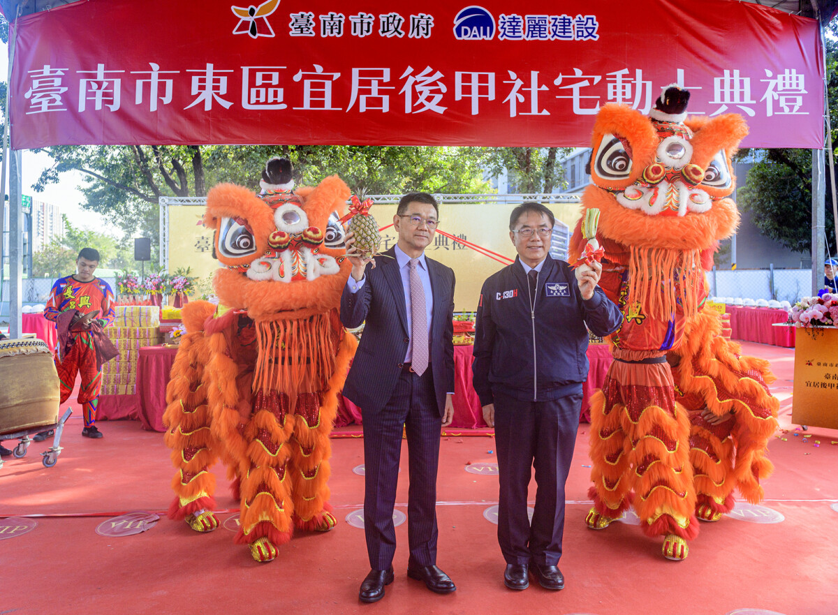 【記者 劉秋菊/台南 報導】台南市政府積極推動社會住宅與公辦都市更新政策,今(22)日於東區舉行「宜居後甲」社會住宅動土典禮,象徵市府透過公私協力機制,持續將都市更新成果回饋市民,為落實居住正義再添重要里程碑。市長黃偉哲親自主持動土儀式,與內政部國土管理署署長吳欣修、內政部國土管理署南區都市基礎工程分署分署長林敬賢、總統府國策顧問王永順、地方民意代表等共同見證這項指標性市政建設正式啟動。