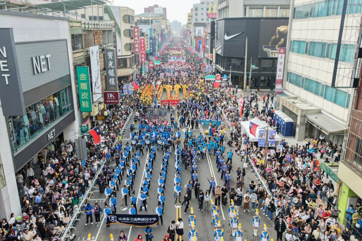 ▲2025嘉義市國際管樂節─踩街嘉年華,民眾爭相目睹盛況。