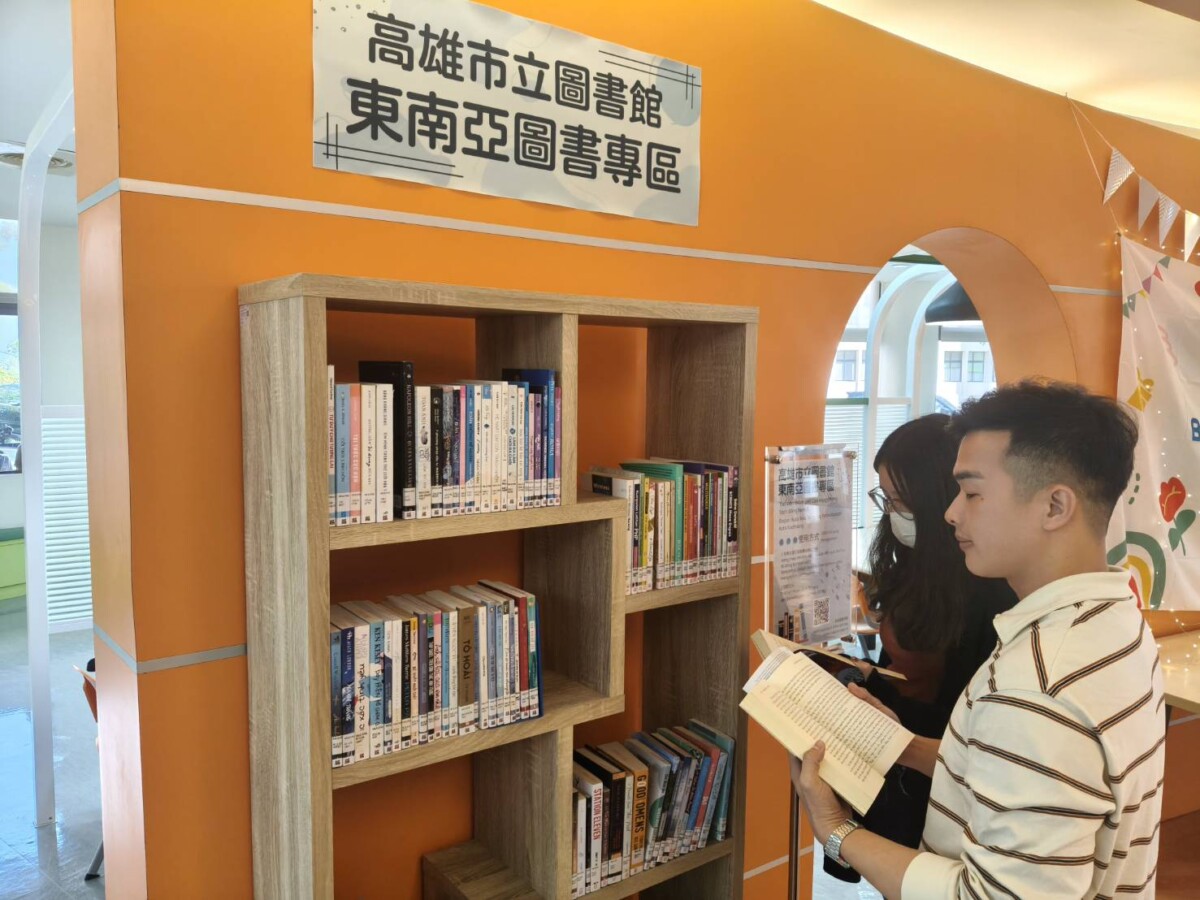 ▲輔英科大圖書館展出東南亞圖書,提供外籍生借閱。