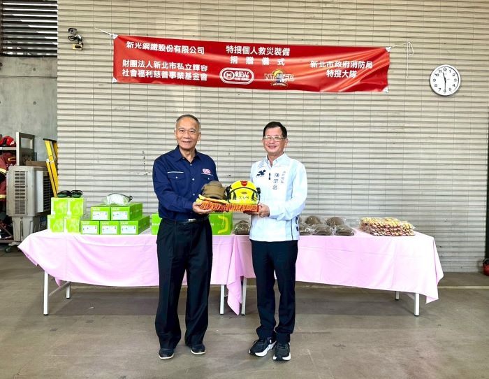 【民眾新聞葉柏成新北報導】新北市消防局今〈24〉日於特搜大隊辦理「新光鋼鐵股份有限公司及財團法人新北市私立輝容社會福利慈善事業基金會聯合捐贈個人防護裝備典禮」,由局陳崇岳局長主持,此次捐贈70套個人防護裝備,將大幅提升特搜人員執行任務時的安全性與效能,也象徵民間力量與消防機關攜手守護城市安全的深厚情誼。