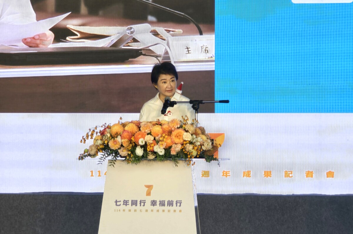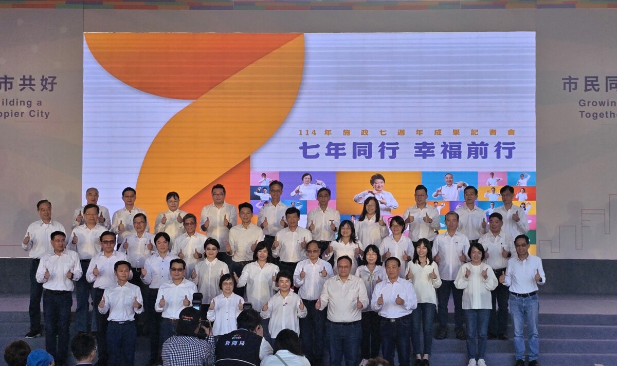 【記者 廖美雅/台中 報導】台中市長盧秀燕率領市府團隊執政滿7年,即將邁向第8年,今(24)日舉行施政7週年成果記者會,以「七年同行、幸福前行」為主軸,向市民報告7年來的施政成果。盧秀燕今日上台首先率領全體市府團隊一鞠躬,感謝各界的鞭策與支持。針對近期外界各種勸進,她更透過影片回顧2018年就職典禮上曾說過的話:「沒有什麼比在自己的家園,照顧服務市民家人,更快樂更光榮的事情!」,強調自己有始有終專心市政,秉持三大核心精神,以媽媽心治理市政。