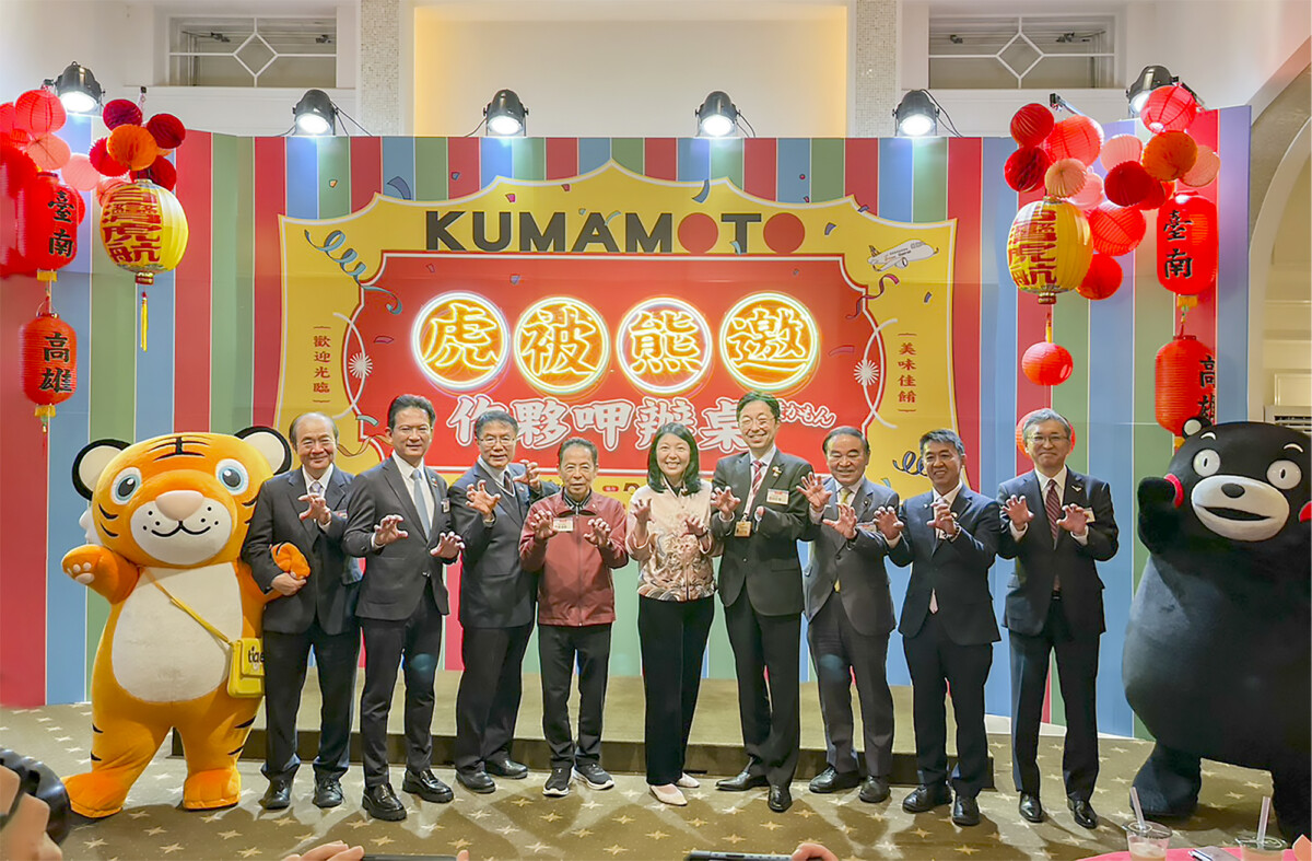 【記者 劉秋菊/台南 報導】臺南市黃偉哲市長積極爭取臺南機場國際航班,經市府觀光旅遊局等團隊長期努力洽談,於本(114)年與臺灣虎航攜手合作成功推動臺南—熊本雙邊直航航線於12月23日正式啟航。黃市長並親自率領市府及觀光公協會出訪團隊搭乘首航航班前往日本熊本,展開城市交流與觀光推廣行程,訪團成員包含觀旅局林國華局長、農業局李芳林局長、林俊憲及許智傑立法委員、許至椿議員以及臺南市旅行商業同業公會蔡承鴻理事長等12名觀光產業代表,透過拜訪當地政府及相關單位,結合熊本縣與臺灣虎航首航午宴活動,辦理臺南觀光物產展示,期能提高臺南國際觀光於當地能見度,進一步促進航班穩定營運,吸引更多熊本及九州地區旅客來臺南旅遊,帶動雙邊觀光交流與實質成效。