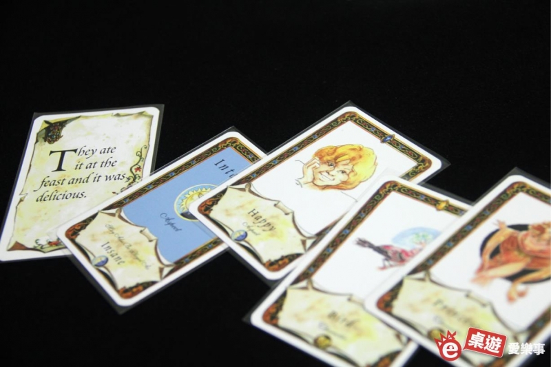一款美麗的卡片遊戲。「妙語說書人」有點抽象,玩家要在每一輪的描述一個故事般的題目,想辦法讓同桌的玩家猜出你的卡片。聽起來很難,但你可以用抽象的方式描述一個單字、情境,甚至運用唱歌來表現。卡片上如繪本般的插畫元素考驗玩家的想像空間。