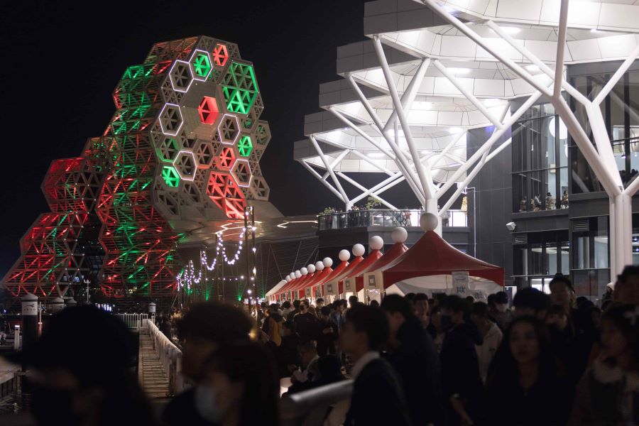 【記者 王雯玲/高雄 報導】《高流聖誕趴》以絕美聖誕樹「金勾TREE」為焦點,活動從12月20日至28日,熱力不間斷,集結13組人氣樂團、7組街頭藝人與超過50攤的「港灣聖誕市集」,繼周末(20)由「夕陽武士 Sunset Samurai」、「孩子王 Kid King」等「南面而歌」代表樂團率性開唱,24、25日晚間「溫蒂漫步 Wendy Wander」、「理想混蛋 Bestards」、「芒果醬 Mango Jump」、「P!SCO」等超強卡司登台獻唱,3日共計吸引超過15萬人次湧入高雄流行音樂中心的珊瑚礁群與鯨魚堤岸一帶,節慶氛圍自白天延續至夜晚,高流執行長丁度嵐也期盼,《高流聖誕趴》能為高雄累積屬於自己的節慶文化節奏,陪伴市民迎接歲末。