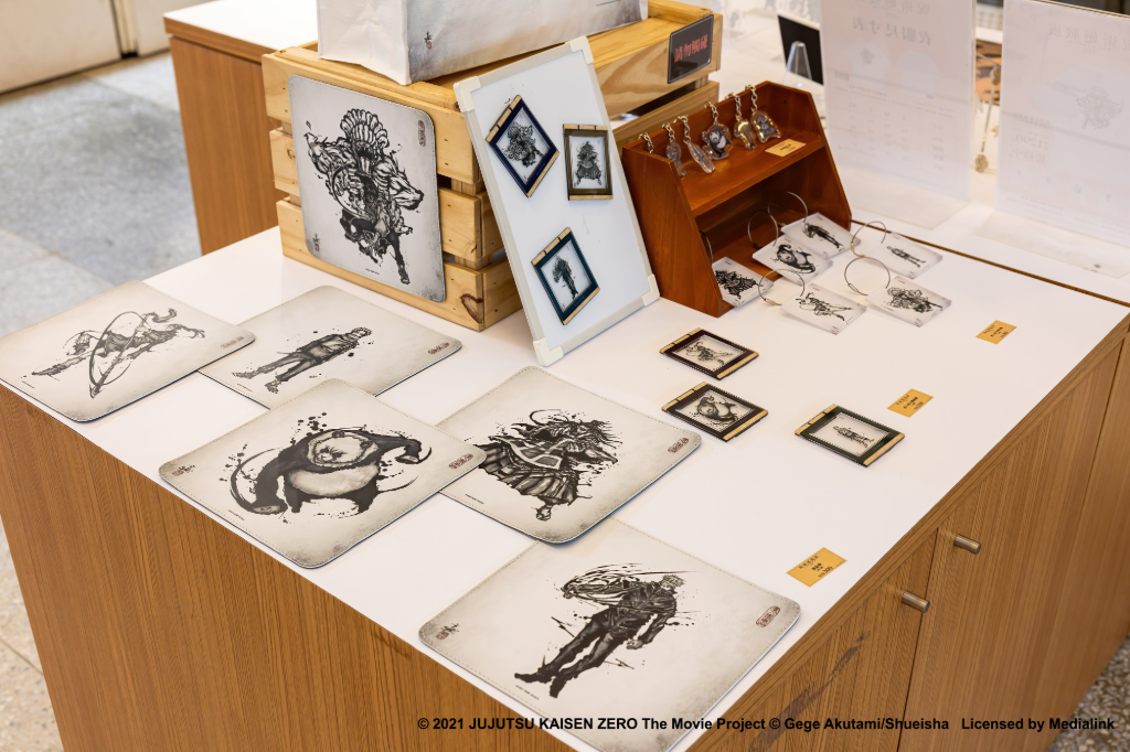展覽限定周邊商品一直都是粉絲搶購焦點,本次特別推出多款精美吊飾、畫框磁鐵等台北站限定商品,而最大亮點莫過於知名武人畫家こうじょう雅之(Kojo Masayuki)為展覽全新創作的武人畫作品,以「武人」精神,重新詮釋《劇場版 咒術迴戰