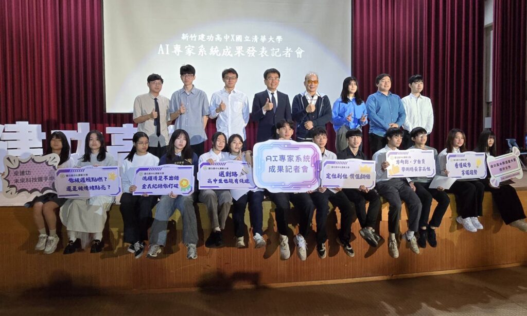 【民眾新聞網方健龍新竹報導】「台灣的智慧世代即將來到,尤其當高一學生,可以用10堂課不到的時間,成功利用AI工具,輕鬆開發出實用的知識產品。」國立清華大學特聘教授周卓煇研究團隊,與建功高中校長林國松、教務主任郭師貝、實驗研究組組長陳立婷等,今(26)日在建功高中共同舉辦AI專家系統成果發表會。