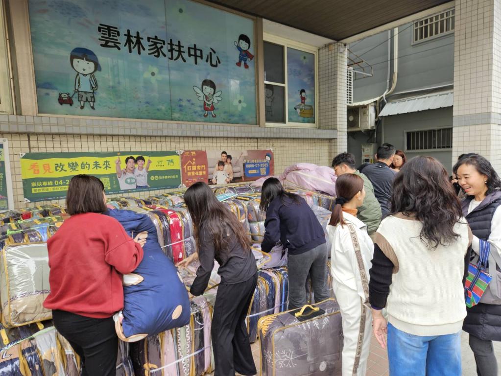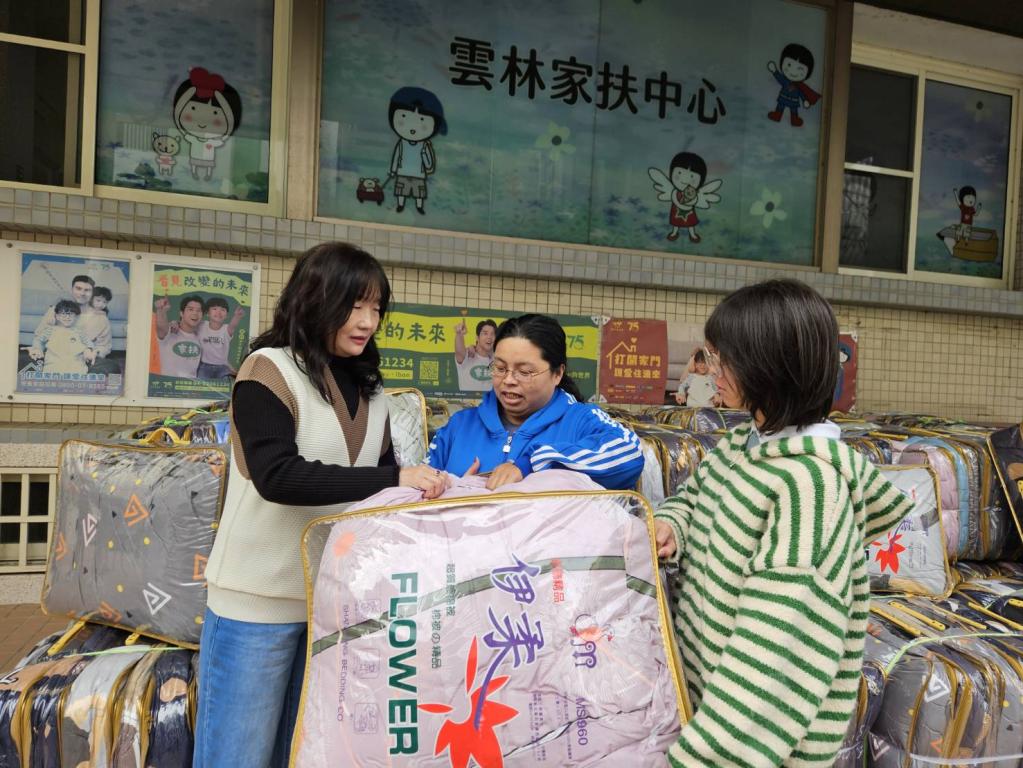 雲林家扶表示:入冬以來這波冷氣團讓人冷支支,感謝胡珊珊等努力之持家扶,讓愛不間斷讓溫馨持續不斷,才得以通知附近家長來領取暖被,社工們也動員將棉被即時送達服務家庭手中,幫助大家度過嚴寒冬天。(于郁金翻攝/雲林家扶中心提供照片)
