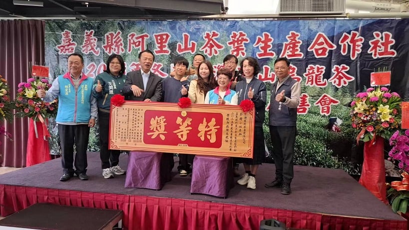 【記者 吳瑞興/嘉義縣 報導】保證責任嘉義縣阿里山茶葉生產合作社今(27)日在番路鄉仁義湖岸大酒店舉辦「2025年冬季台灣高山烏龍茶優良茶頒獎典禮暨展售會」。嘉義縣長翁章梁、立委王美惠、番路鄉農會理事長黃瓊賢、番路鄉長蕭博勝等都親自出席並頒發匾額,對獲獎者表示祝賀,並勉勵業者持續努力,保持優異表現。