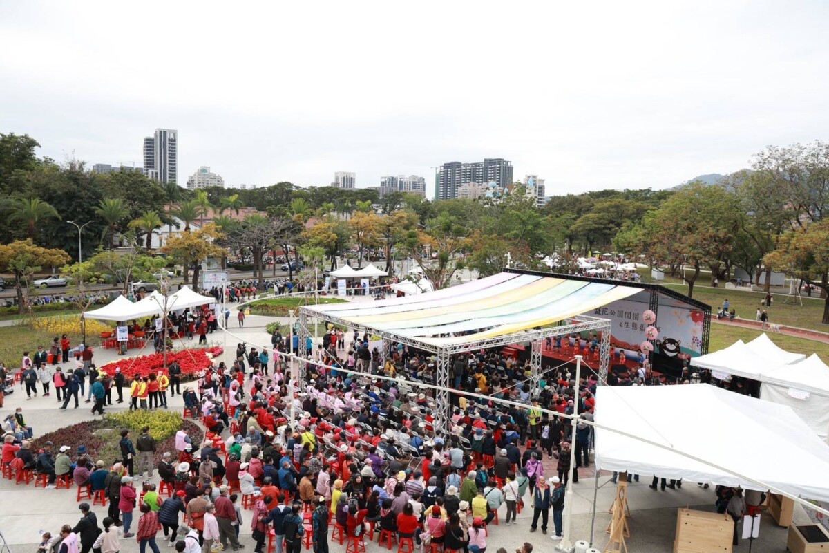今日開園活動響應全球淨零趨勢,以生態嘉年華形式熱鬧登場。活動由小朋友載歌載舞的帶動唱揭開序幕,陳其邁也手比愛心回應充滿朝氣的演出,隨後走訪園區,親自開箱這座融合客家文化與都市景觀的新公園。活動現場規劃多元的「綠森活」體驗,吸引眾多客家鄉親與市民朋友共襄盛舉,親子家庭穿梭園區各角落,參與走讀導覽、手作體驗與盤花茶會等活動,園區內笑聲不斷,氣氛熱絡。