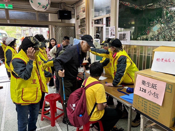 當農村水保署發布土石流及大規模崩塌警戒時,雙鳳里保全住戶須配合地方政府執行預防性疏散撤離。為提升里內自主防災整備與應變能力,本次演練以極端降雨為情境,強化里民對災害發生前、中、後完整流程的熟悉程度,同時也檢視雙鳳里與新莊區公所的協作機制與資源整合量能。當發布土石流與大規模崩塌黃色警戒時,里長立即透過廣播與電話通知保全住戶提高警覺,並由自主防災成員展開巡查、雨量觀測與警戒區域監控。雙鳳里特別納入「長照專車」協助防災宣導的設計,並利用社區長照交通服務,向長者、行動不便者及獨居住戶說明警戒時需注意事項、聯絡方式與協助流程,示範如何將長照交通資源轉化為災時守護力量。此作法也能降低弱勢族群在災中因「資訊落差」而延遲撤離的風險,使長照服務真正成為社區防災的一環。當雨量達警戒值,提升至紅色警戒後,隨即啟動疏散避難作業,公所同步出動中巴協助接送,模擬土石流來臨時的撤離作業。透過長照專車接送保全住戶從集合地點前往避難場所,讓居民熟悉實際撤離流程,同時檢視動線規劃、上車動作、點名確認及回報程序是否順暢,展現雙鳳里自主防災與公所互助的實際行動力。