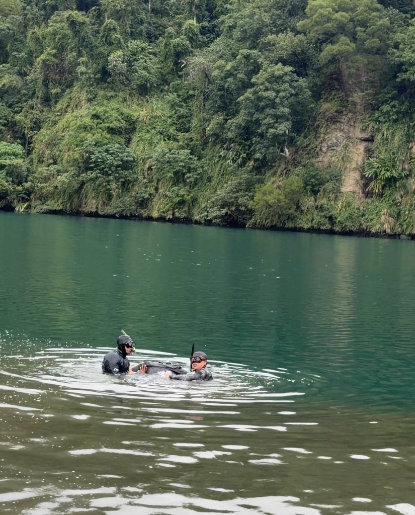 ▲ 潛水夫臨演將黃少祺拖出水面時,忘了將頭部抬高,導致他臉部全程浸在水中。(圖:三立)
