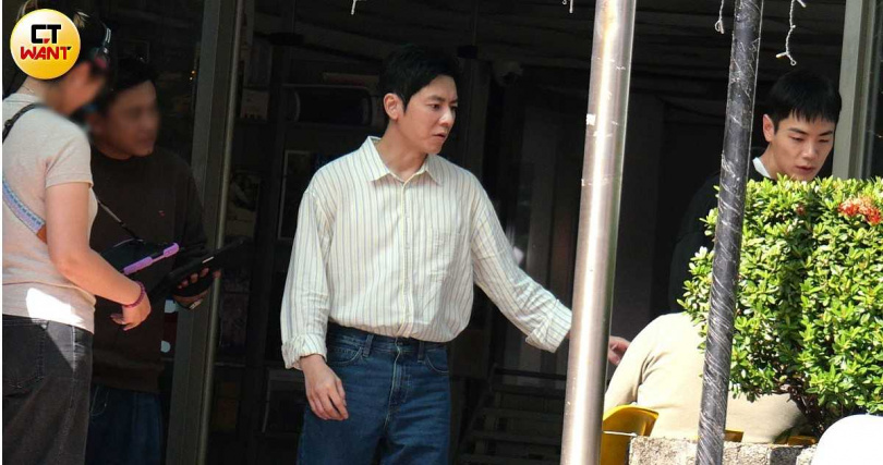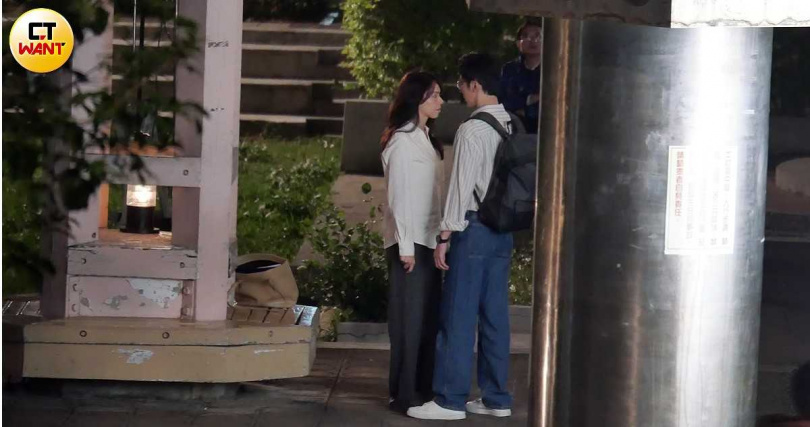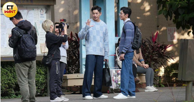 原以為只是學校同事間的對戲,下午3點後,劇情大轉變,李國毅和禾浩辰換了身比較輕便服裝,都是藍色系毛衣、牛仔褲與小白鞋,有點情侶裝的感覺,看起來是拍攝下班後的劇情,