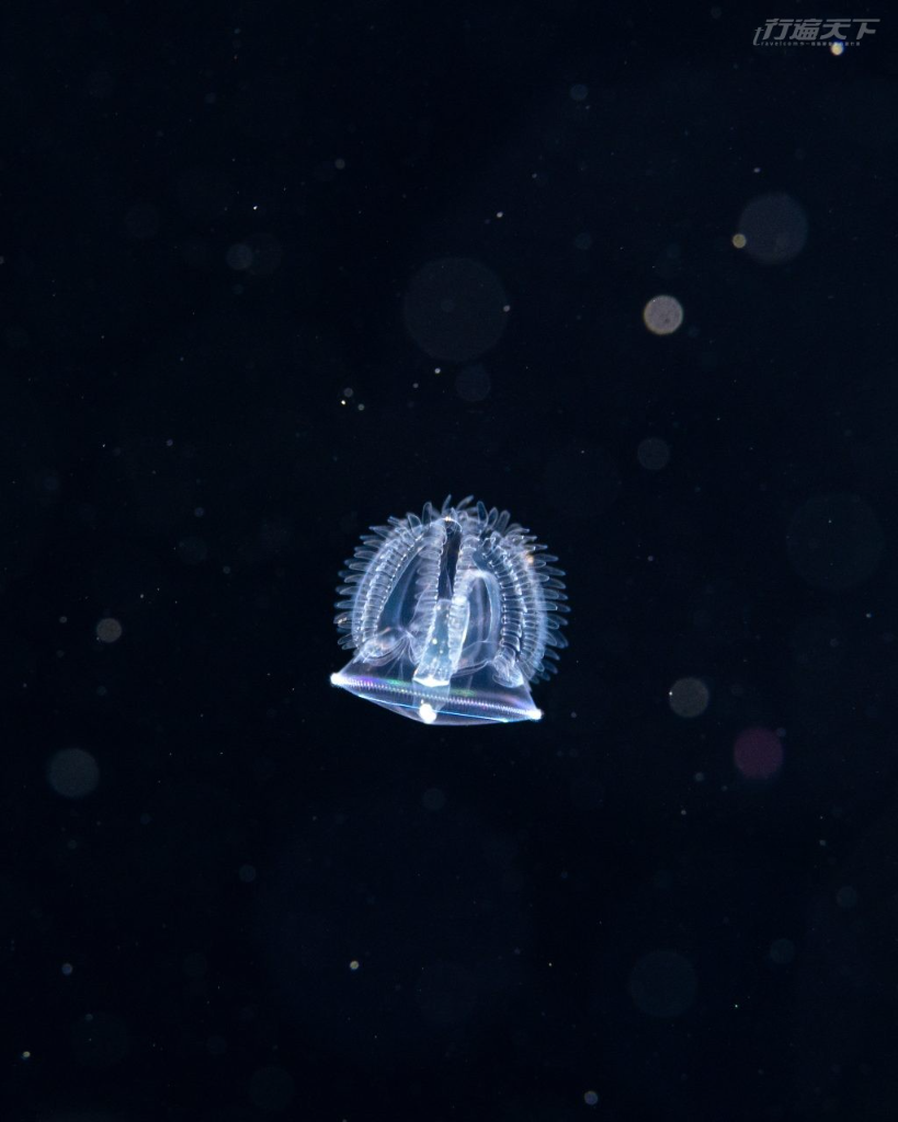 夜潛常見生物有色彩繽紛的海蛞蝓,還有頭足類,像是花枝和一顆黃豆般大的耳烏賊。黑夜的水層中也飄浮著許多神奇的生物,許多生物白天會在數百甚至上千米的深海中躲避天敵,夜間往淺水層覓食,我們叫他們「黑水生物」,許多黑水生物是透明的,像這隻長得像外星飛船、體長約0.8公分的柱頭蟲,要不是親眼看到他後拍下來,之後再查資料我也不會知道有這種生物存在!這些短暫的相遇,提醒自己別忘了海洋的神秘與浩瀚。