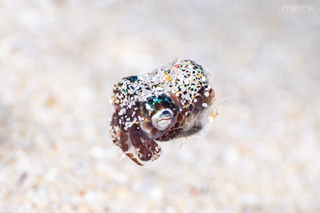 ▲ 黃豆般大的耳烏賊,半圓形的鰭像是附著在身體兩側的「耳」而得名。