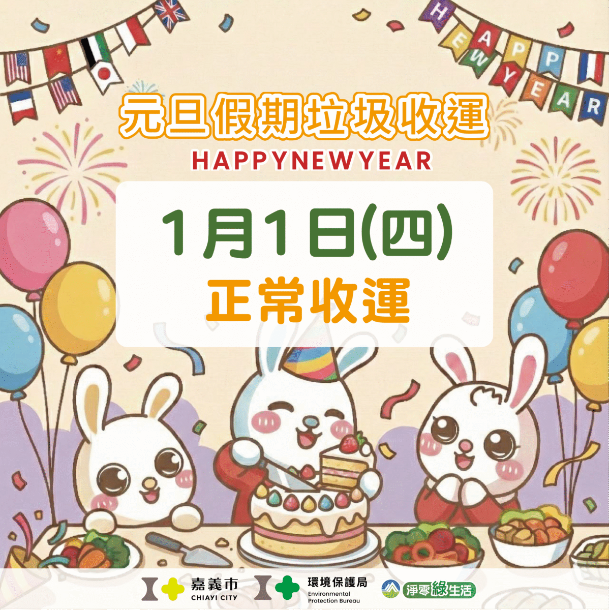 【記者 劉芳妃/嘉義市 報導】迎接嶄新的一年,服務廣大市民,確保市容整潔,元旦(1月1日)垃圾嘉義市清潔隊「正常收運」不打烊,呼籲民眾務必遵守「垃圾不落地」原則,切勿在垃圾車未到達前,將垃圾包預先堆置於路邊或地面,違者將依法開罰。