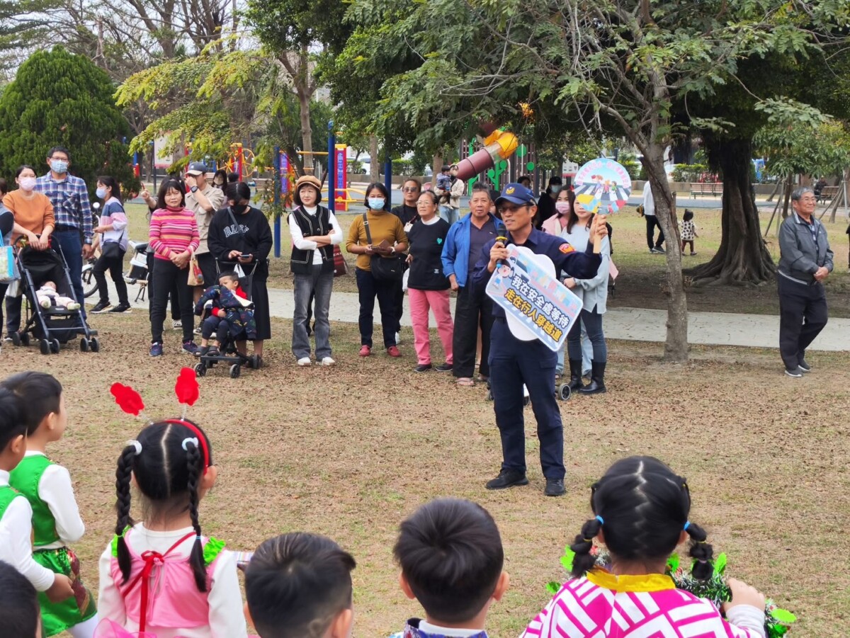 活動當天,警方在踩街隊伍出發前,先向幼童與家長說明過馬路時的注意事項,包括走斑馬線、停看聽及舉手示意等基本觀念,提醒大家隨時留意左右來車,避免意外發生。