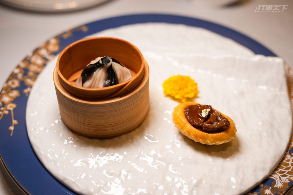 ▲ 玥龍軒「名人雅宴」套餐包含老陳皮小籠包、原隻鮑魚野菌撻等菜色。