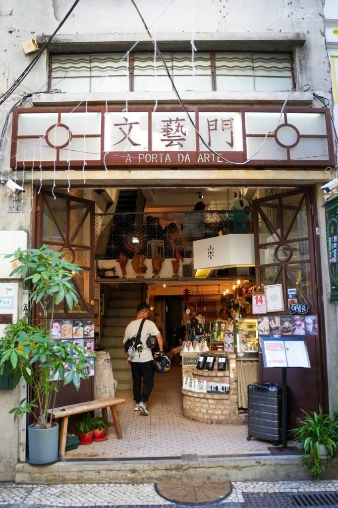 之後步行至關前正街、關前後街探訪文創小店,這兒的「關」指的是舊時的澳門海關,如今兩條平行老街匯集了許多特色商店。在街口,你會看到英記餅家與花生漫畫合作的「英記Snoopy主題店」;往裡走,不妨再到「文藝門」歇歇腿,其原址是間白鐵工廠,可在此點杯咖啡,再到二樓空間小憩,享受老城區的悠閒。不遠處的「張權中藥房」,是澳門在地傳統藥油品牌「張權破痛油」的概念店,裡頭展示品牌故事,並販售破痛油加按摩神器「三角雀」套組,絕對是最具在地風情的伴手禮。