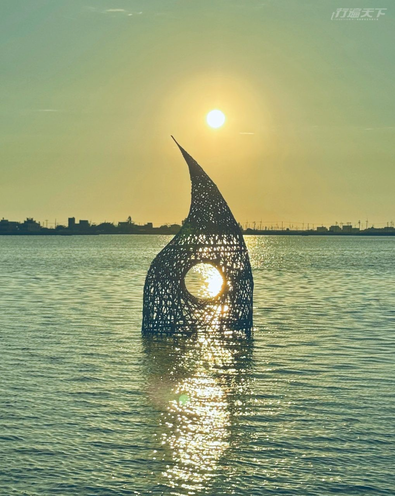 ▲ 成龍濕地美麗的夕陽與藝術作品交織成一幅動人畫面。