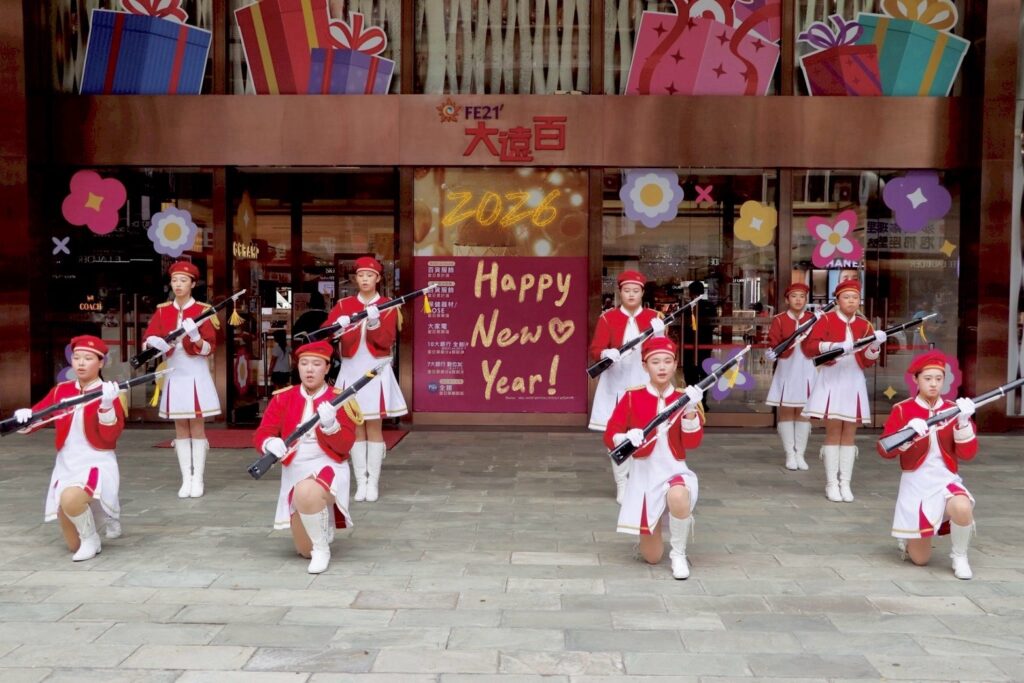 為迎接新年到來,新竹大遠百於1月1日元旦當天,特別邀請忠信學校「山前女子槍隊」帶來氣勢磅礡的精彩演出,以整齊劃一的步伐與精準俐落的操槍動 作,為新年揭開熱鬧序幕。同時,為推廣生活美學、支持在地學習能量,1月3日前攜手科學城社區大學花藝班,共同舉辦「冬季童話」黃子娟師生展,集結 學員創作成果,透過花藝設計傳遞自然之美與生活溫度,邀請民眾走進花與藝 術交織的美好時光。