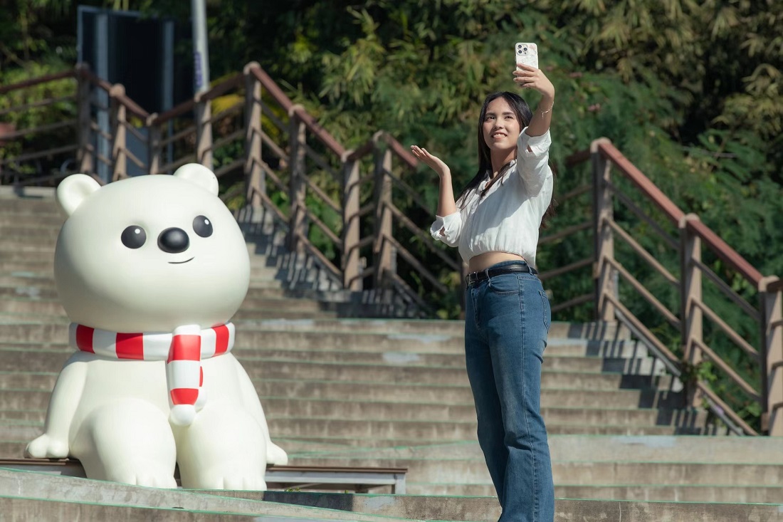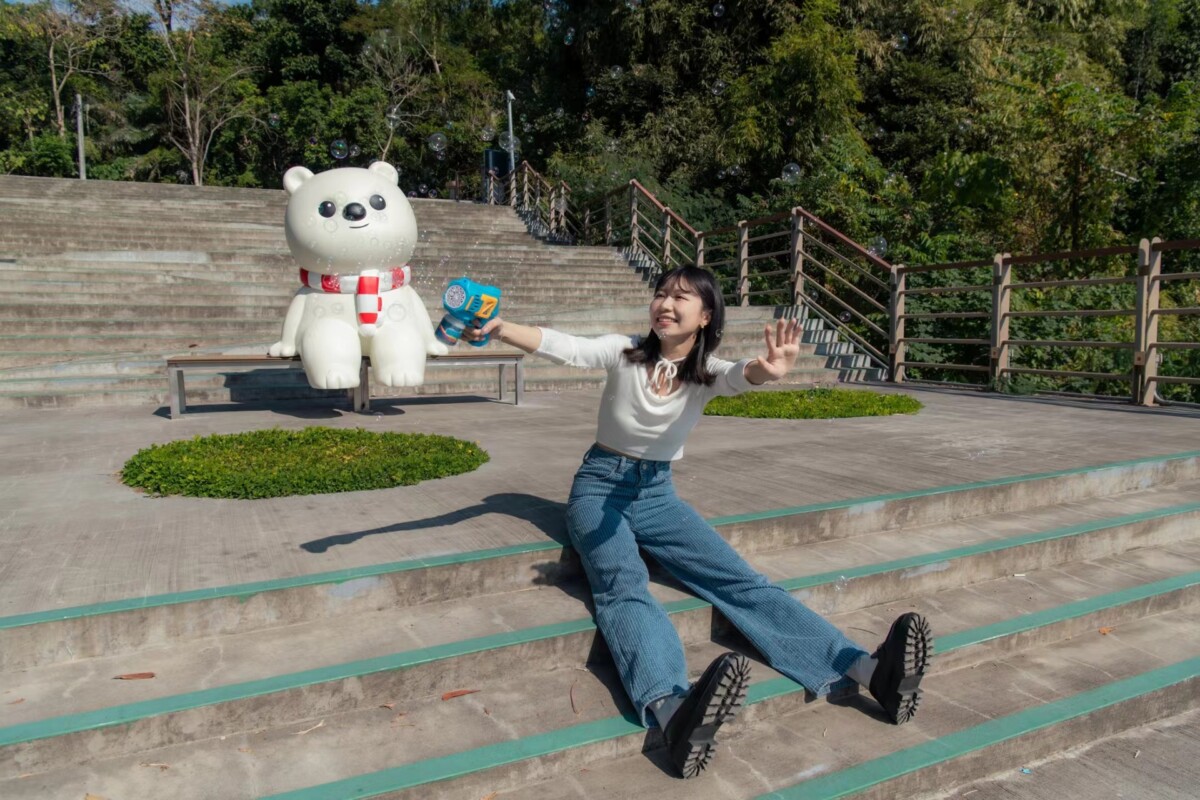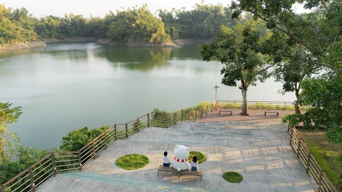 張婉芬處長指出,從側面看,大白熊彷彿在靜靜欣賞蘭潭湖光;從正面看,又像是在對鏡頭微笑,邀請民眾坐在身旁,與每一位來到蘭潭的旅人一起看湖、看山,拍下一張屬於自己的回憶。