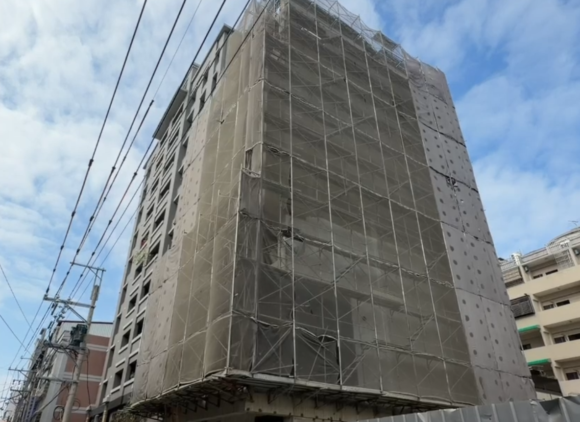 傳出有工人墜落受傷的興建中大樓。翻攝畫面