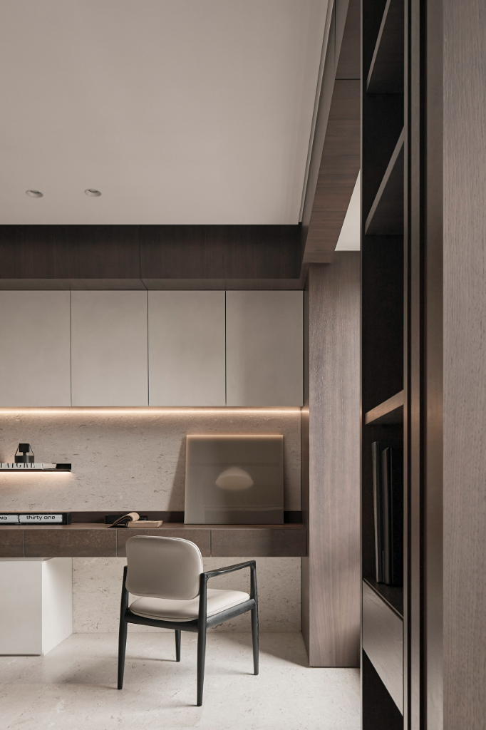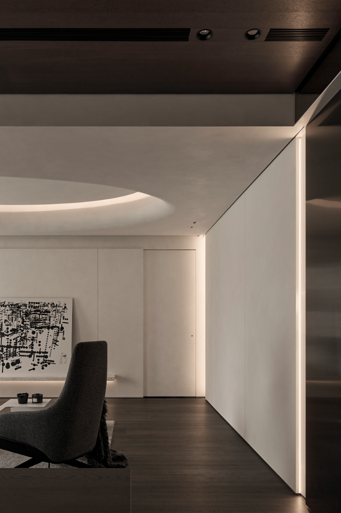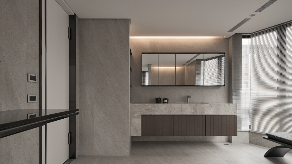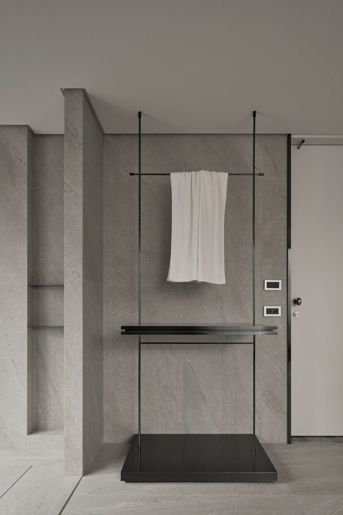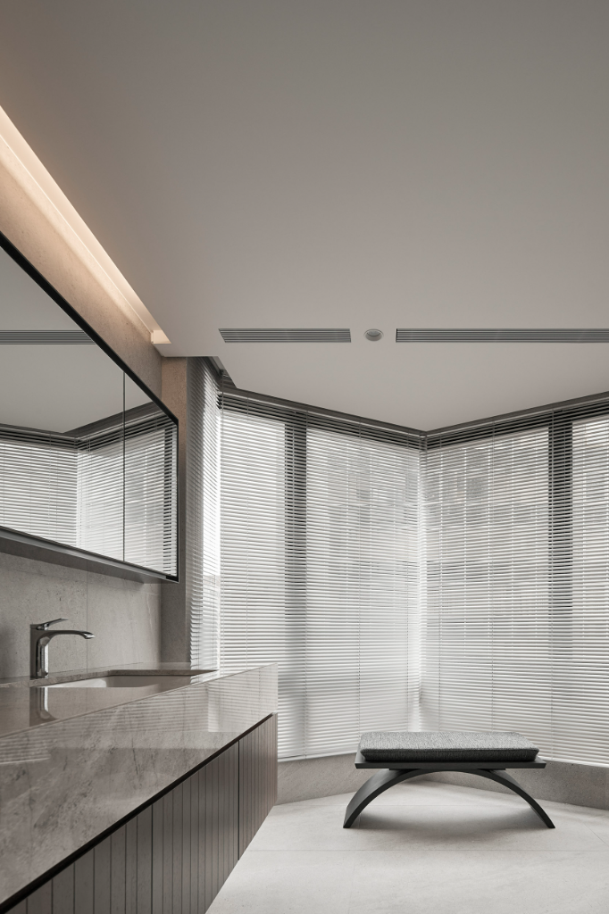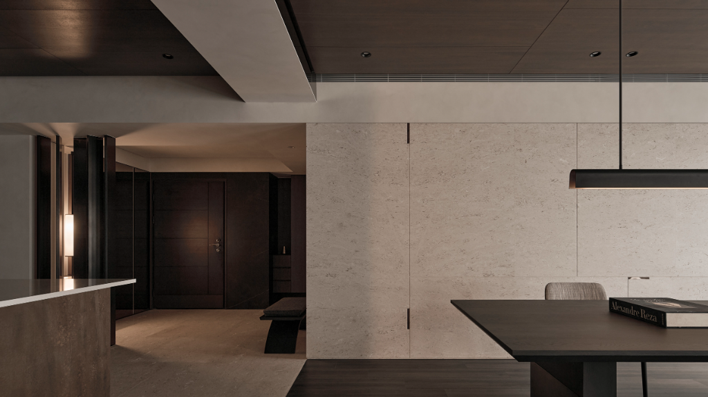 此外,雖然以留白為主調,但全案並未停留在極簡的單一層次上,而是引入特殊塗料、大理石等材料,並透過細膩的拼接與切分,讓牆面、轉角與界面都呈現不同的質地特色,當光線在表面移動,會因應時間、角度的差異形塑多元氛圍,透過光影變化讓住所擺脫單純靜止容器的角色,隨著屋主日積月累的歲月痕跡,逐漸成就獨一無二的人文溫度與精采故事。
