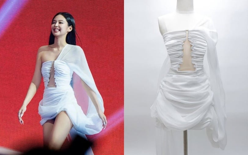 在〈Seoul City〉舞台,Jennie 的造型取材自「半跏思惟像」,以俐落的結構肩線長袍,搭配匠人手工製作的韓式「小雞結」垂飾,整體氛圍既靜謐又帶著力量,展現沉穩而堅定的美感。在〈Zen〉與〈Like Jennie〉兩段舞台中,造型從韓服的領口與衣帶汲取靈感,再結合西式 corset 的束胸線條,讓輪廓更有張力與立體感,同時展現女性身體的力量與優雅平衡。另外,下身服裝則以鋼筆畫風格描繪韓國工藝元素,例如垂飾、銀匕首等象徵性的圖案,再點綴上生絲髮帶的結飾,讓整體造型更有層次與細節感。