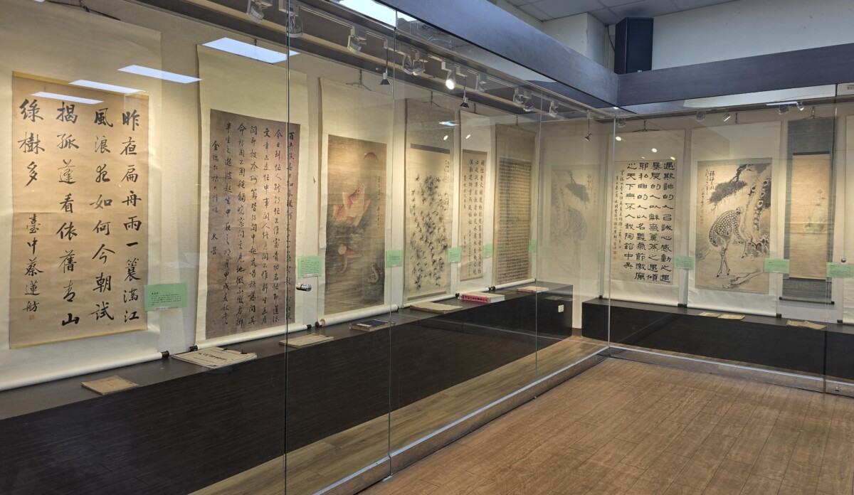 展覽不僅包括書法和畫作,還展示了書法字帖和碑帖等珍貴的臨摹教材,這些資料對於學習書法者來說,具有極高的學術和文化價值。展品中的書法字帖,包括鹿苑吟社創辦人之一施梅樵先生的書帖,曾為彰化地區的學子提供了重要的學習資源,對地方書法文化的傳承貢獻良多。展覽中展出的約40件作品,橫跨不同時代、不同地區的文人雅士之作。