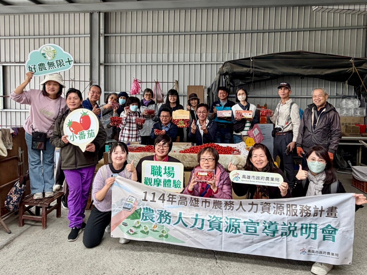 【記者 王苡蘋╱高雄 報導】為因應農業季節性人力短缺,高雄市政府農業局攜手美濃區農會及高雄市銀髮人才服務據點,於1月8日在美濃地區舉辦「紅寶石小番茄・採果包裝工作輕體驗」活動,邀請銀髮族走入農場,親身體驗小番茄採收與包裝工作,了解農務工作型態與節奏,為未來投入農務工作做初步認識。