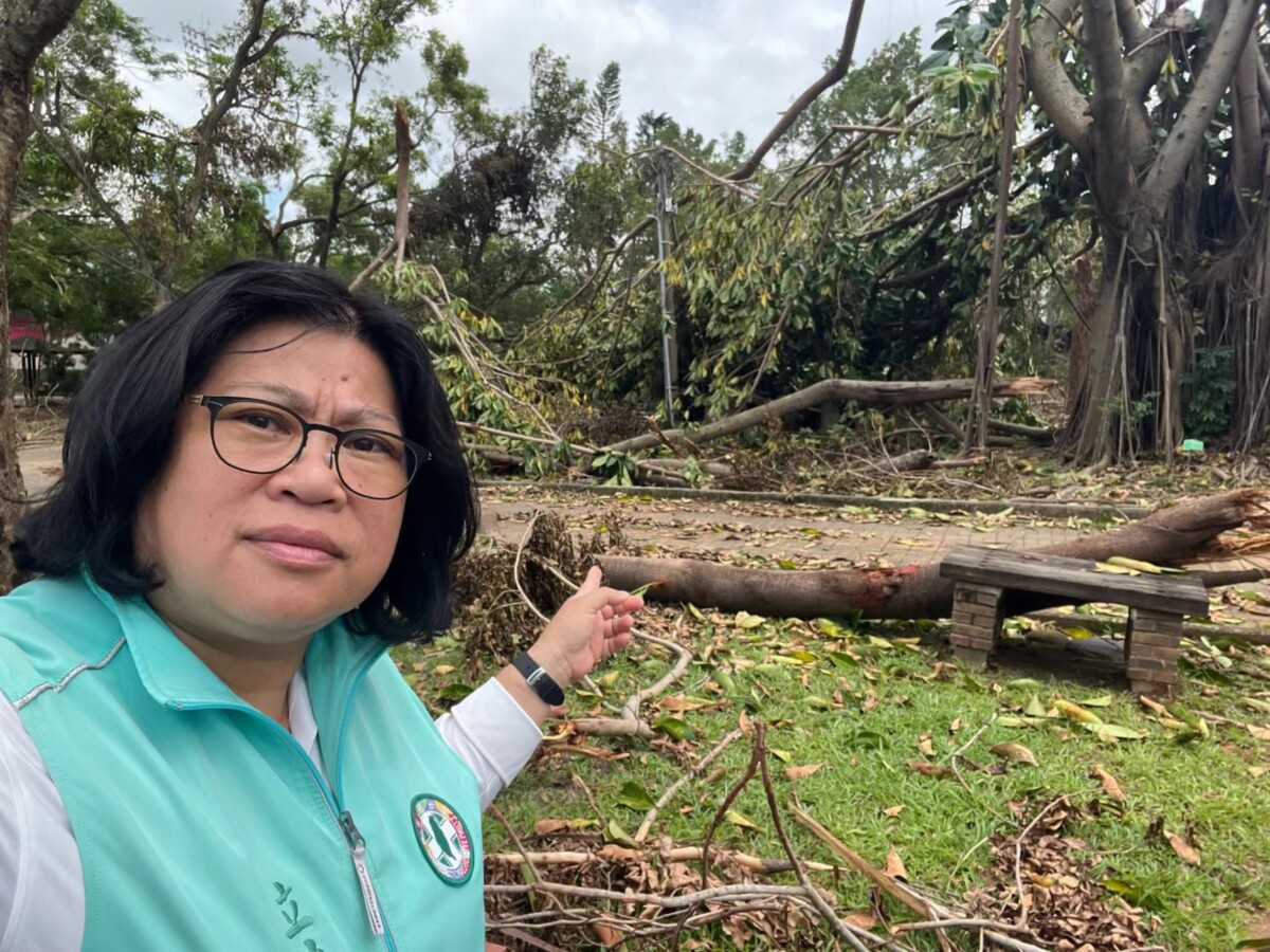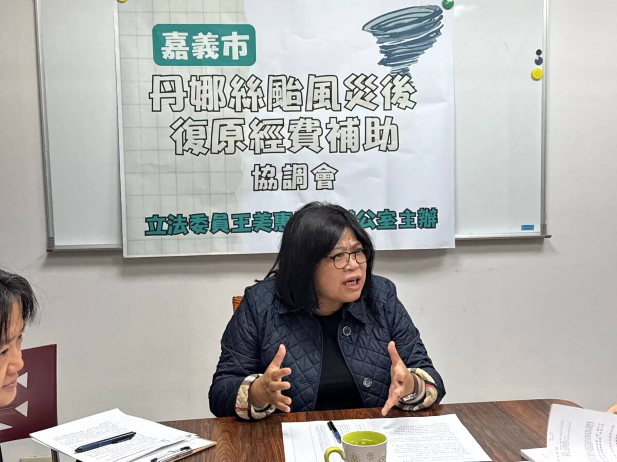 王美惠說,丹娜絲颱風罕見自嘉義登陸,災情嚴重,光是倒伏樹木超過 1.5 萬株、斷枝逾 2.4 萬株,園燈損壞逾 100 盞、設施受損約 400 處,修復工作艱鉅,地方財政難以獨力負擔,中央必須即時支援。