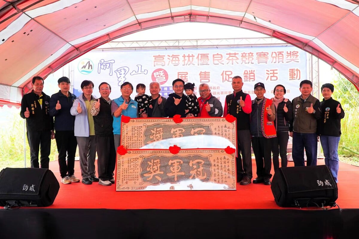 圖:嘉義縣阿里山鄉農會昨(10)日在樂野服務區舉辦「2025阿里山冬季高海拔優良茶比賽頒獎暨展售促銷活動」。「高帝園茶業」今年冬茶大賽在阿里山鄉農會、梅山鄉農會及梅山鄉公所三埸大賽中共勇奪3個「特等獎」和5個「冠軍奬」是今年冬茶比賽最大贏家。(記者吳瑞興翻攝)