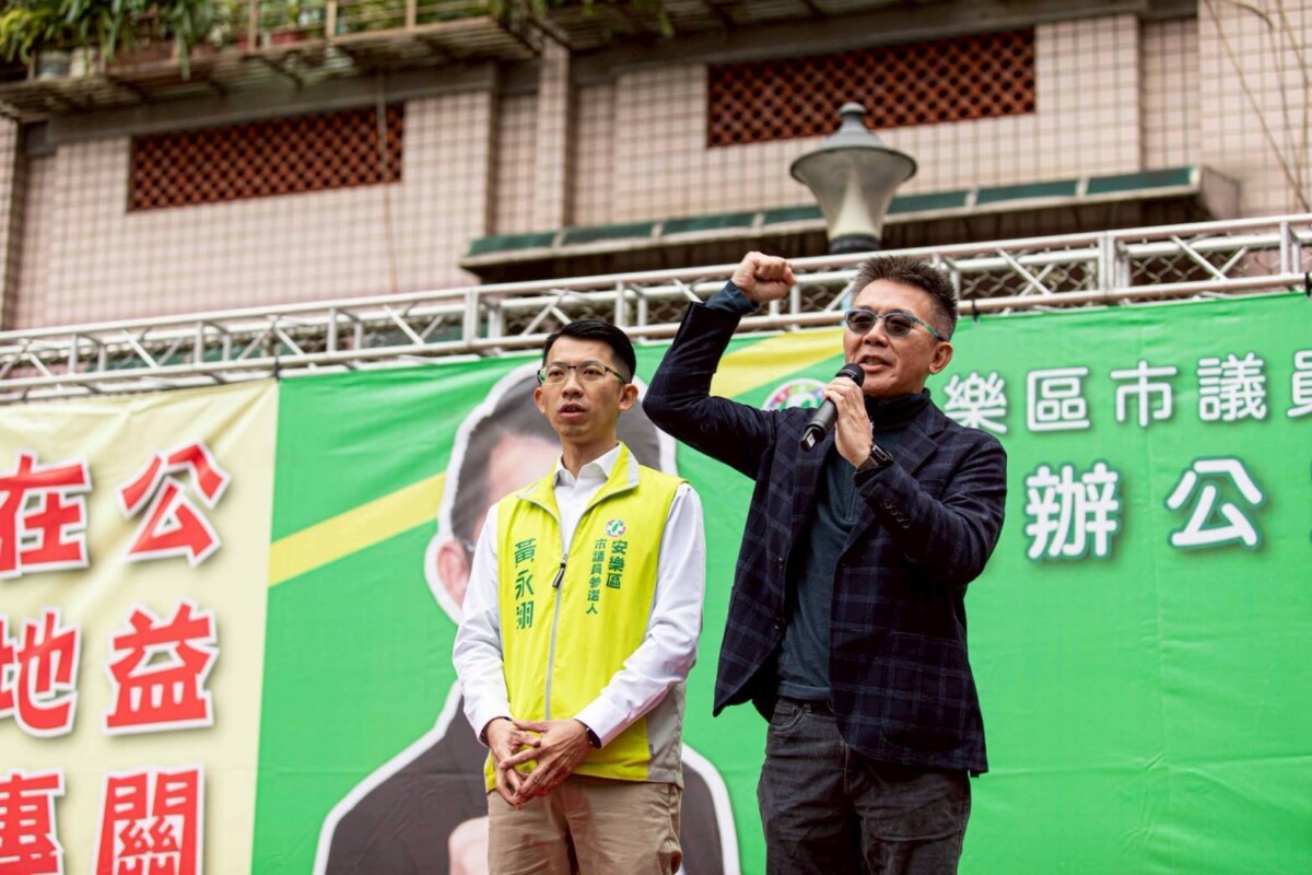 ▲前基隆市林右昌市府團隊民政處長、現任黃永翔競辦總督導王榆森站台力挺黃永翔參選安樂區市議員。(圖/黃永翔辦公室提供)
