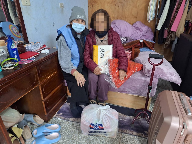 其中令人動容的故事,是化名「小龍」的個案。小龍因疾病導致行動不便,無法工作,長年獨居在一處簡陋鐵皮屋。過去他只能靠微薄補助金度日,一入夜屋內冷得刺骨,常常冷醒至天明。訪員志工送來厚毛毯、保暖背心與食物包,他激動得紅眼眶,顫聲說:「謝謝大家的愛心,有人記得我。」