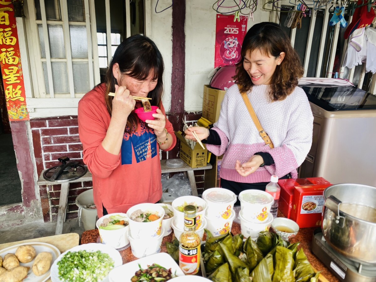 這場圍爐的背後,是一批由民間捐贈的冷凍年菜。捐贈者連續兩年提供北農嚴選年菜組合,包含鮑魚鹿野雞湯、筍香富貴蹄、白菜獅子頭與櫻花蝦料理。雲林家扶社工不僅負責分送,也依家庭狀況,安排到宅協助,降低長輩備餐的負擔。