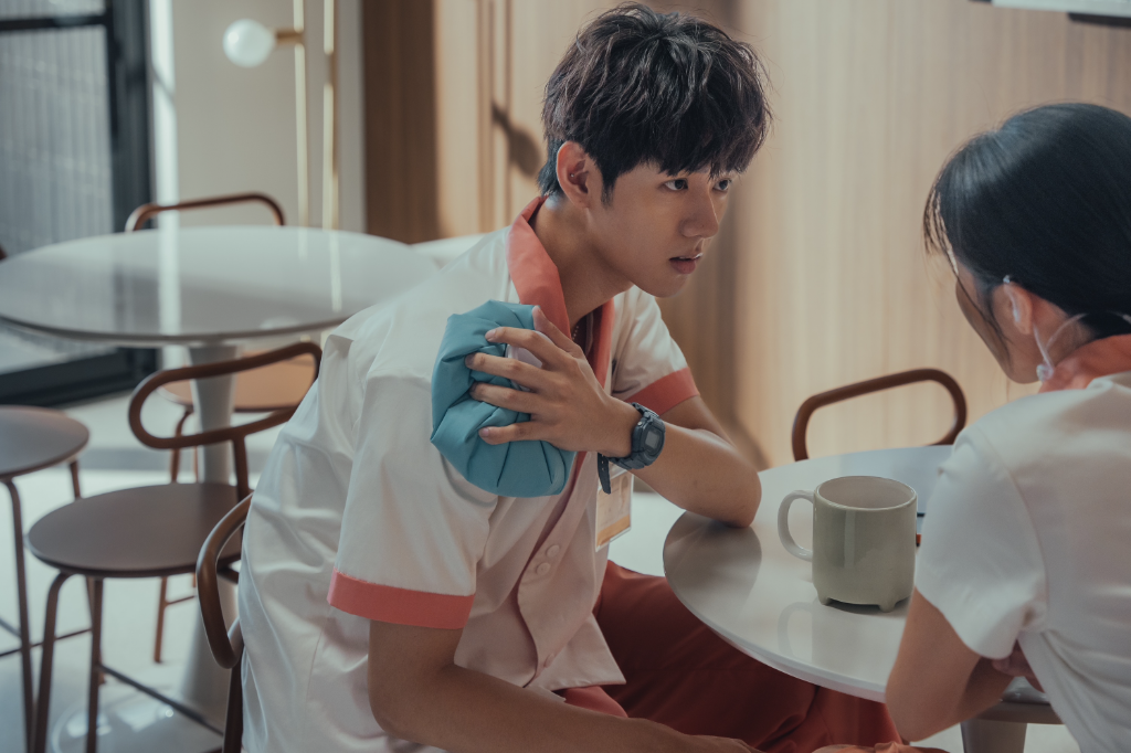 除了獻聲演唱插曲,洪暐哲也在《整形過後》中飾演護理師林麟,談到首次拍戲的心情轉折,他坦言一開始其實相當不安:「剛開始拍攝真的可以用『驚嚇』兩個字形容,因為以前唱跳表演舞台的妝造都很精緻,但拍戲時導演要求要自然、貼近護理人員的設定,所以我幾乎不上底妝,只做簡單遮瑕跟修容,一開始真的很焦慮。」直到看見鏡頭中的自己,他才慢慢理解導演的用意:「後來發現那樣的自己很真實,也更貼近角色,才懂導演說的『真實才是本質』。」