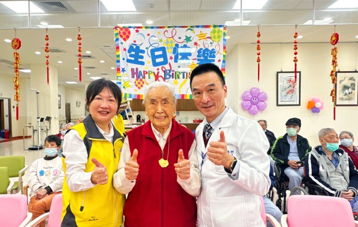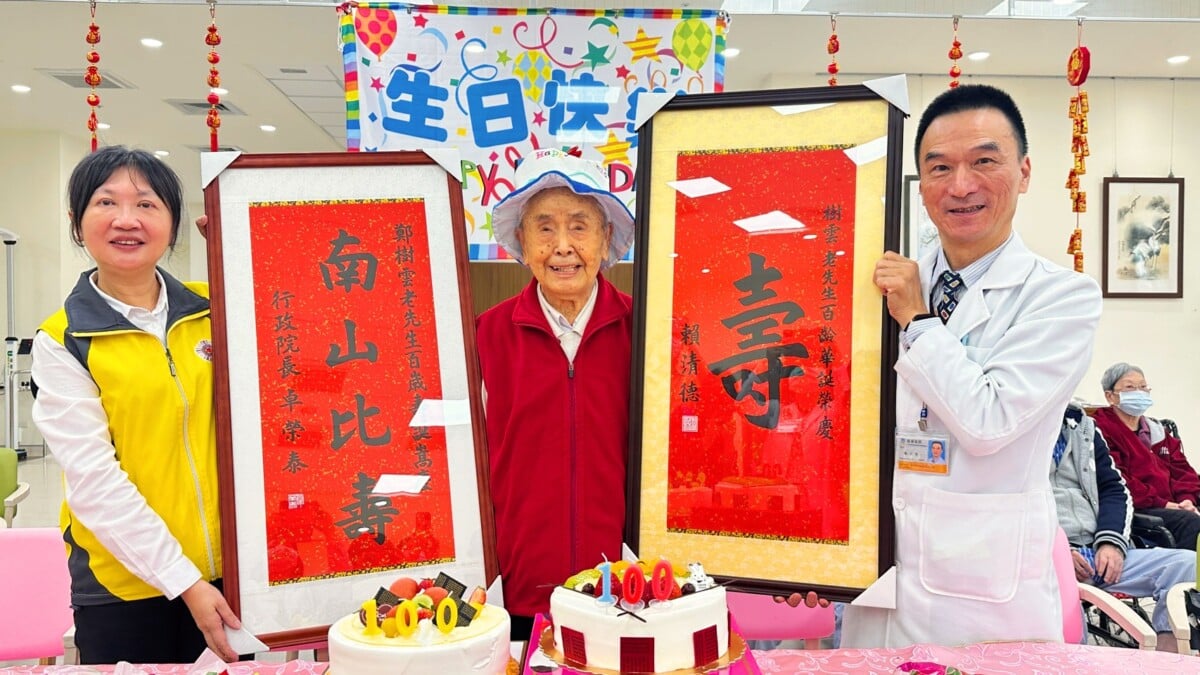 【記者 劉芳妃/嘉義市 報導】為表達對榮民前輩一生奉獻國家的崇高敬意,臺中榮民總醫院嘉義分院攜手嘉義榮民服務處,於今(15)日共同為百歲榮民鄭樹雲爺爺舉辦溫馨隆重的百歲慶生活動。院長陳正榮率領附設護理之家團隊、社工室團隊到場祝賀;嘉義榮民服務處處長許淑菁偕同輔導員及服務組長共襄盛舉,鄭爺爺戶籍所在地三和村村長鐘文一、鄭爺爺曾上課的社區據點站長詹麗穎也特別前來祝壽,兒女、女婿及孫女齊聚陪伴,現場氣氛溫馨感人。