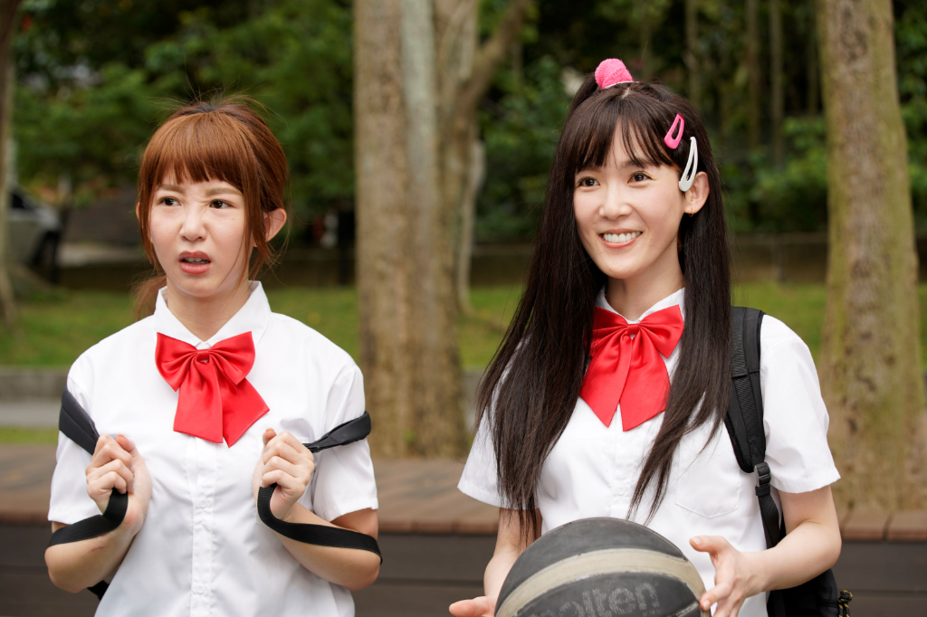 ▲ 左起郭書瑤、孫可芳逆齡扮演高中生。(圖:彼此影業)